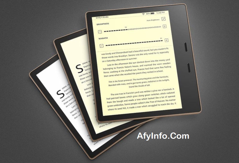 Kindle Oasis menawarkan layar 7-inci yang nyaman dengan lampu latar, resolusi 300ppi, dan sensor cahaya adaptif. Layar yang lebih besar berarti dapat memuat 300 lebih banyak kata di layar sekaligus dari tablet 6 inci. Tablet ini dibandrol dengan harga Rp.2.787.000. Tablet ini juga menjadi Kindle tahan air pertama. Ini memiliki peringkat tahan air IPX8; Anda bisa merendamnya dalam dua meter air selama 60 menit tanpa khawatir.