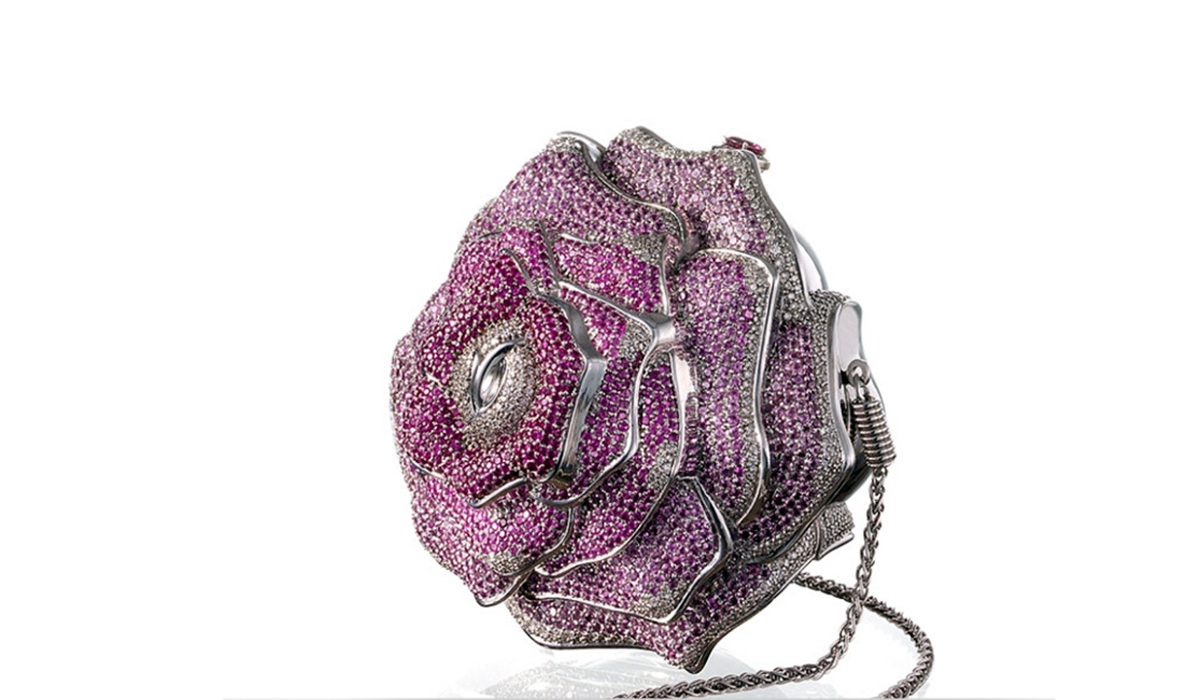 Dan diurutan terkhir ada tas Leiber Precious Rose. Tas yang satu ini benar benar terlihat sangat mewah dan cantik, pasalnya tas ini memiliki desain bentuk bunga mawar berwarna ungu yang dilapisi berlian dan juga permata yang sangat berkilau. Tas ini benar melambangkan seorang yang sangat harmonis dan elegant. Dan fakta yang menariknya lagi tas ini hanya diproduksi 1 buah di dunia. Tas dipatok harga sekitar $92 ribu dollar atau setara dengan Rp.1,1 milliar rupiah.